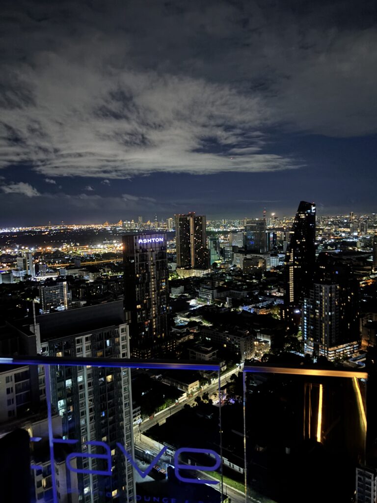 バンコクの夜景を眺めながら楽しむカクテルは格別で、さつまいものフライドポテトなどのおつまみも非常に美味しかったです。
