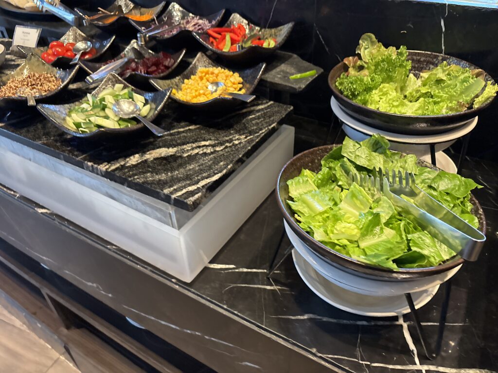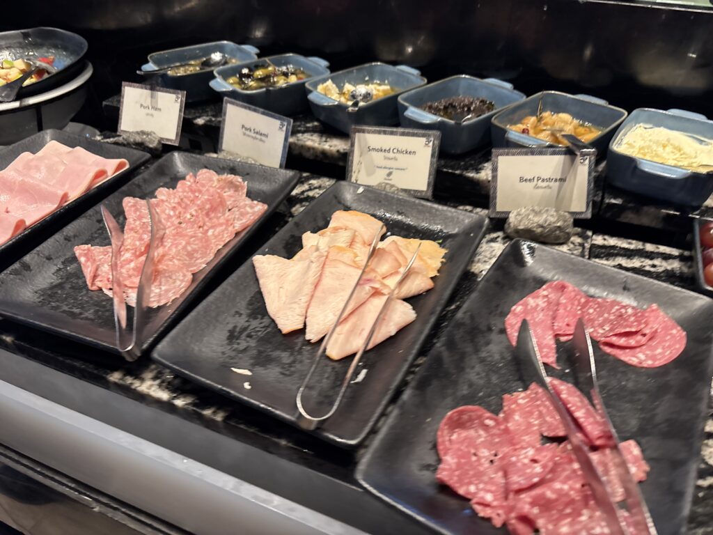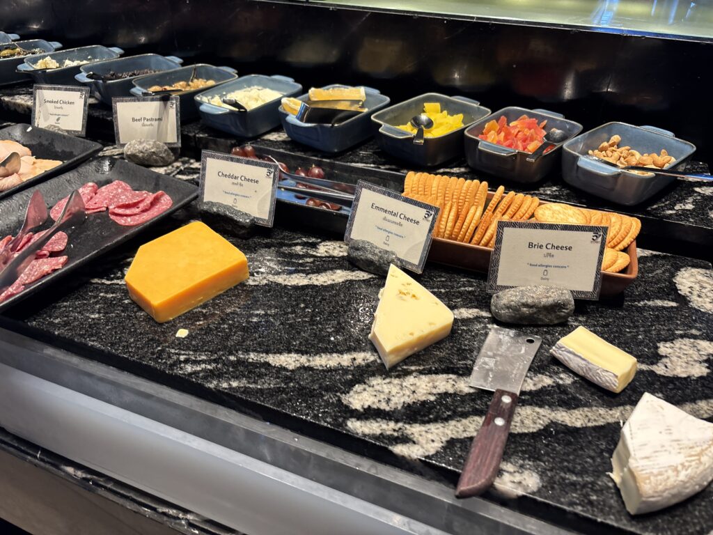 チーズや冷菜、ハムやサラミ、サラダも充実しており、さらにインド系の料理まで楽しめる幅広いラインナップです。
