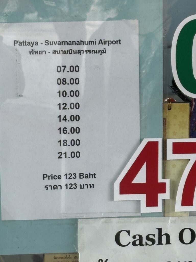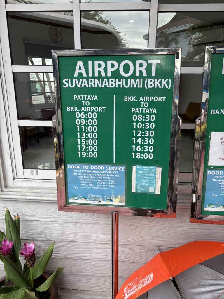 パタヤからスワンナプーム国際空港へは、バスでの移動が安くて便利な定番手段です。