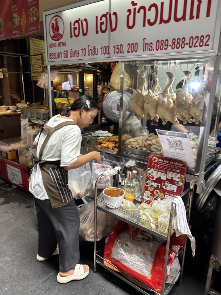 「ヘンヘンカオマンガイ」は、バンコク滞在中にぜひ味わってほしい屋台グルメ。