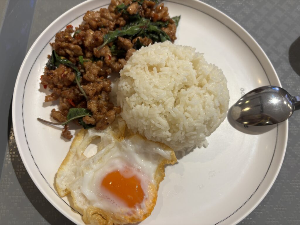 この店は「タイ料理はちょっと不安…」という方にもぴったり。ホーリーバジルの香りとベーコンの旨味が絶妙で、バンコク旅行のランチにぜひ試してみてください!