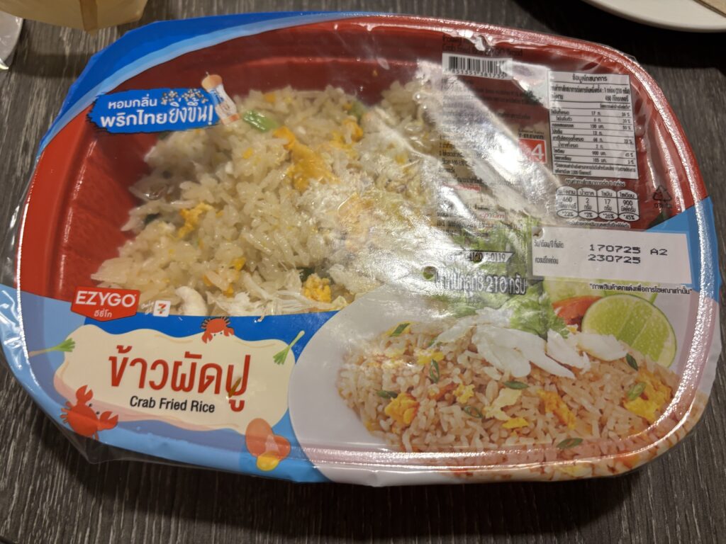 タイに行ったら、ぜひセブンイレブンで「蟹チャーハン」をチェックしてみてください。ホテルでのんびり食べるもよし、移動中の軽食にもぴったり。写真を見れば、その美味しさが伝わるはず!